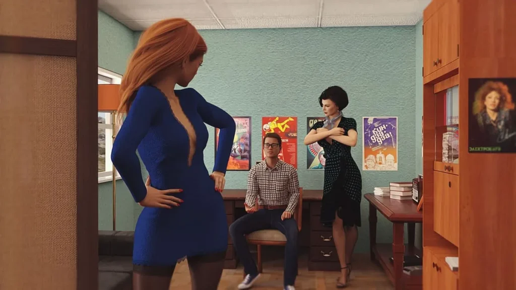 The environments are characters themselves. You’ll navigate through dimly lit communal apartments (kommunalkas) with peeling wallpaper, austere government offices with imposing wooden desks, and sparse public courtyards. Every pixel feels intentional, building a world that is both historically resonant and strangely cozy. The character designs are where this retro Soviet visual novel truly shines. The women are drawn with a resilience and personality that goes far beyond their provocative situations. Their expressions, their period-appropriate hairstyles, and yes, the detailed vintage underwear, all tell a story of life within a system that demanded conformity, while private moments whispered of individuality.