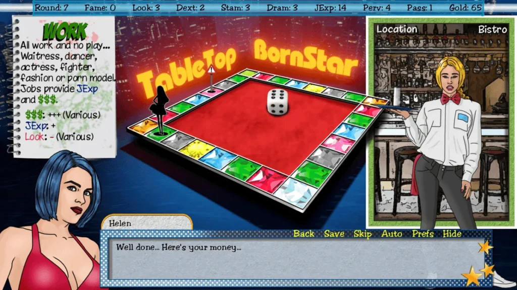 From those nail-biting dice rolls to Mary Jane’s transformative journey through 1999 Hollywood’s underbelly, TableTop BornStar delivers a fresh spin on adult visual novels with its tabletop heart. Whether you chase the high-stakes slut path for thrills or grind the pure route for lasting success, every choice shapes an unforgettable tale of ambition and temptation. I’ve revisited the game multiple times, each playthrough revealing new layers—like those stunning barista animations that never get old. If you’re craving strategic depth wrapped in glamour and intrigue, download TableTop BornStar now, roll your first dice, and claim your spot in the stars. Your epic story awaits—what path will you choose?